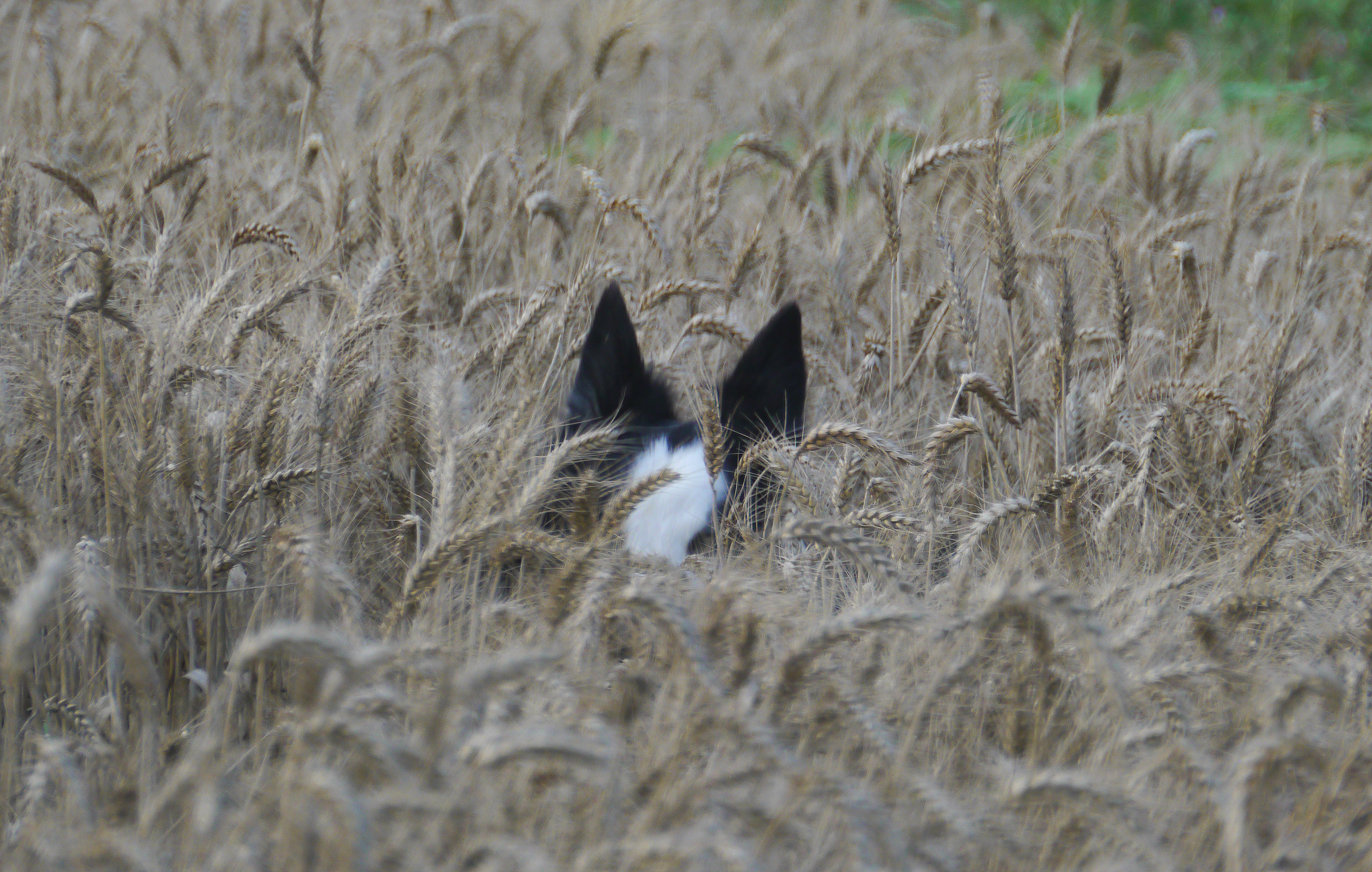 For  a few months now, part of our favourite walk has involved this field – if I’m not mistaken its wheat. Its fun to run through, and there’s loads of animal scents to be had. I like to leap up and down like a young gazelle.